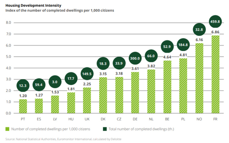 This is because the average cost of housing in less developed countries is considerably cheaper than that of the UK, Sweden andGermany. For example: The average transaction price per square meter in 2018for a new dwelling was more than three times higher in the UK compared to the likes of Poland and Hungary.